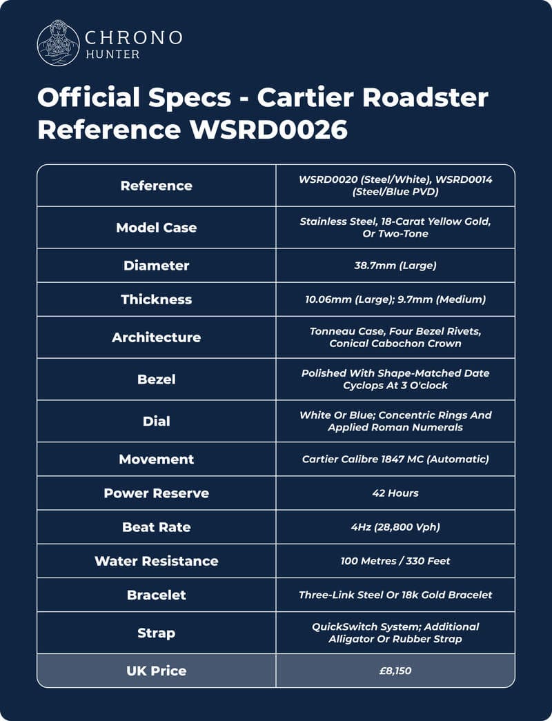Official Specs - Cartier Roadster Reference WSRD0026