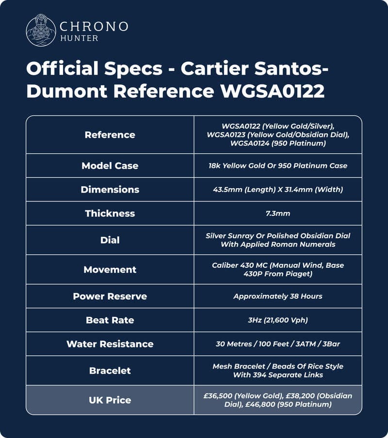 Official Specs - Cartier Santos-Dumont Reference WGSA0122