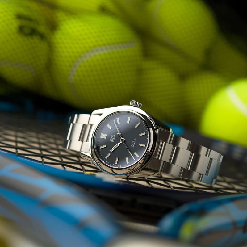 - An entry-level timepiece, serve and volley your way up the horological rankings with 100 metres of water resistance, screw-down crown and refined hues like champagne pink, metallic black and dollarone green.