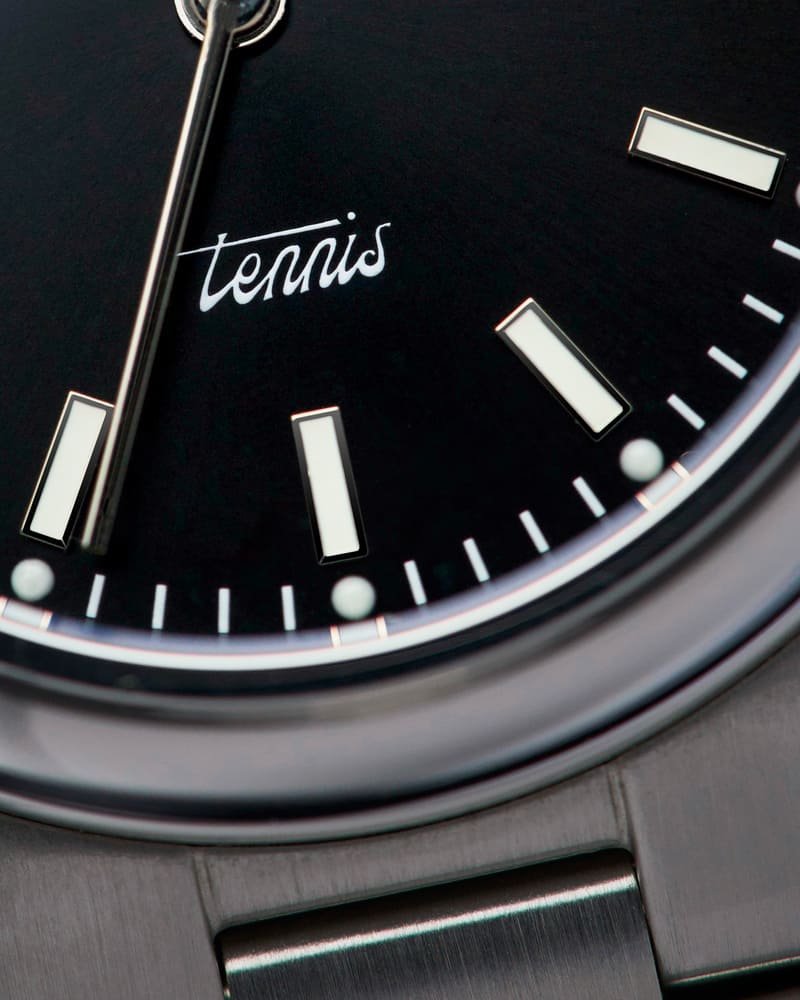 "Every detail of the Tennis Chic was intentional. The 37mm case sits at just 9mm thick — we wanted something that could move seamlessly from a match to a dinner table. The dial is the real protagonist: a subtle-tone gradient with central radial brushing with applied steel indices, carrying SuperLuminova that glows blue at night. It's understated, but there's a lot happening when you look closely."