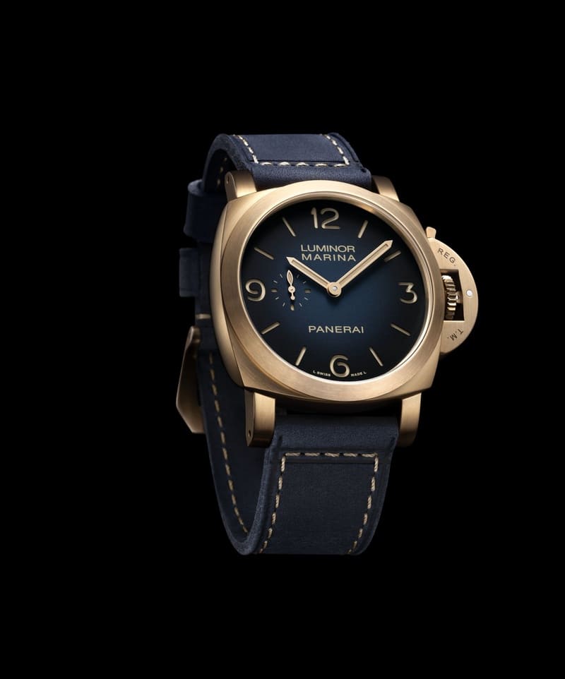 Incorporating a first-time bronze colourway to this legendary collection is no mean feat. Housing the P.980 calibre, titanium caseback and infamous crown-protecting bridge, introducing the new Panerai Luminor Marina Bronzo PAM01678