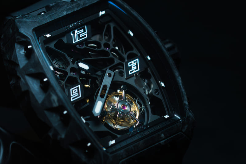 A la Richard Mille, you will notice visible screws on the perimeter, while we like the visual theatre that’s highlighted by the stealth-like black aesthetics and skeletonised display. This gives an opportunity to gaze into the inner workings of this timepiece.