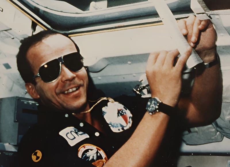 French astronaut, Jean-Loup Chrétien, wearing the Spationaute I
