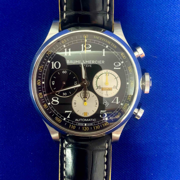 Baume & Mercier Capeland M0A10282 Black Dial Leather Strap Automatic Chronograph Watch