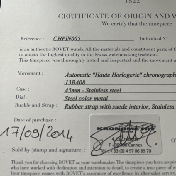 Bovet Pininfarina CHPIN005 Silver Dial Rubber Strap Titanium Automatic Chronograph Watch