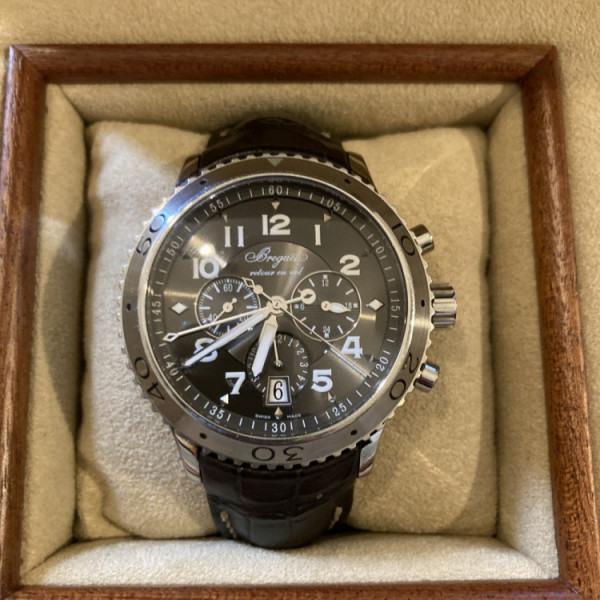 Breguet Type XXI 3810 Grey Dial Black Leather Strap 42mm
