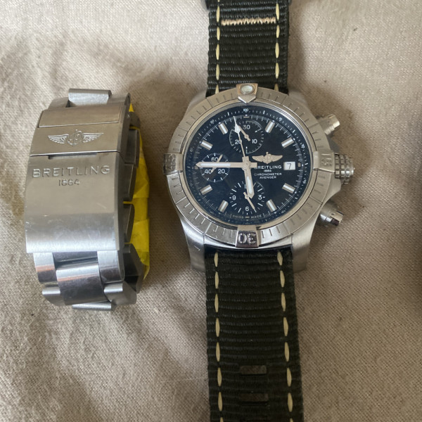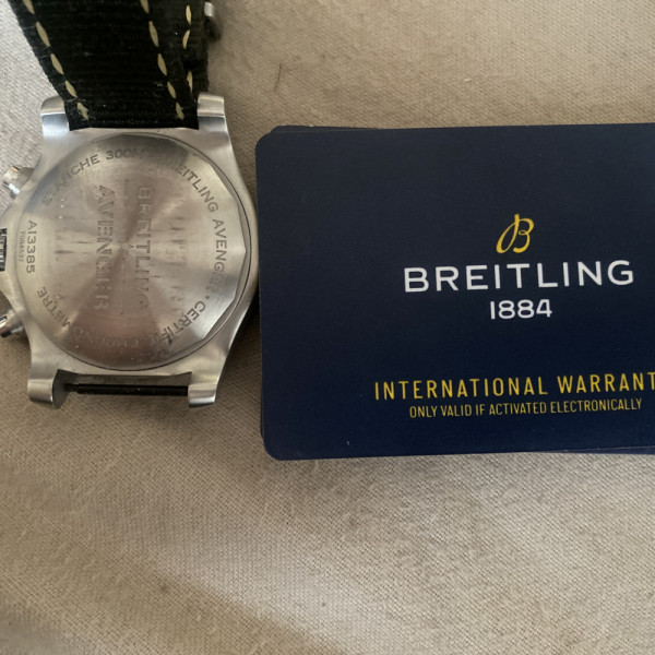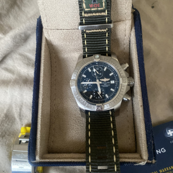Breitling Avenger Chronograph A13385 Black Dial Steel & Fabric Strap Automatic Watch