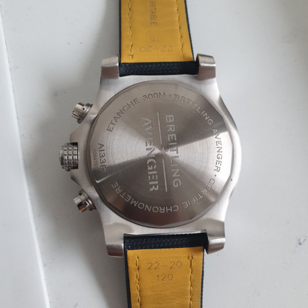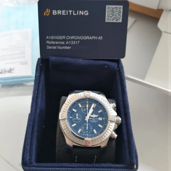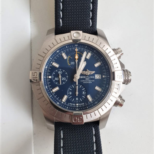 Breitling Avenger Chronograph 45mm A13317 Blue Dial Textile Strap Stainless Steel
