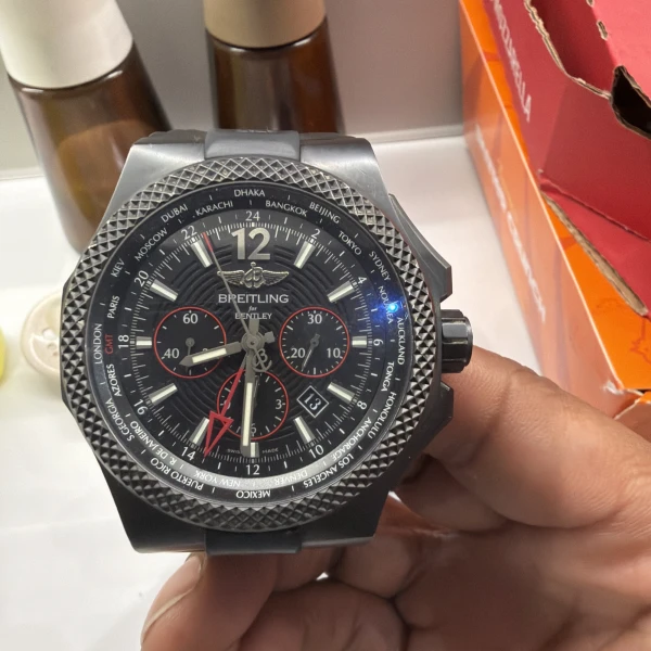 Breitling Bentley GMT Light Body B04 VB0432 Black Dial Automatic 49mm Titanium Rubber Strap