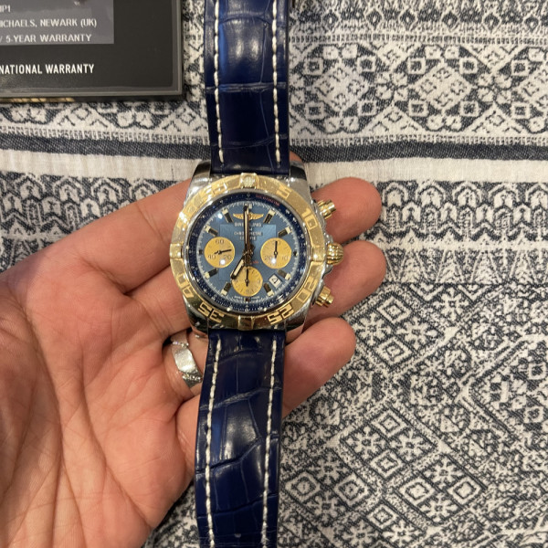 Breitling Chronomat 44 CB0110121C1C1 Blue Dial Leather Strap Automatic Chronograph