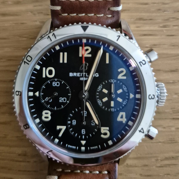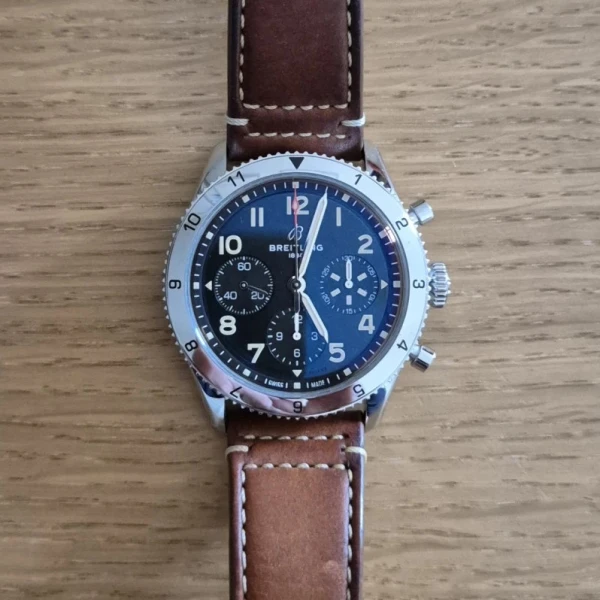 Breitling Classic Avi Chronograph 42 A23380 Black Dial Leather Strap