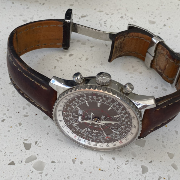 Breitling Montbrillant 01 A2133012 Brown Dial Stainless Steel Automatic Chronograph Leather Strap Watch