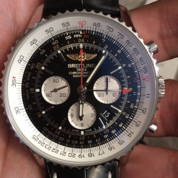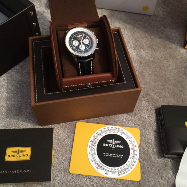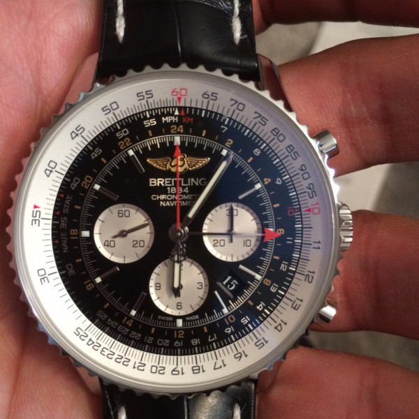 Breitling Navitimer 1 B04 Chronograph GMT 48 AB0441 Black Dial Leather Strap