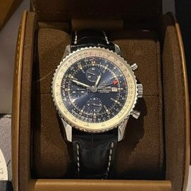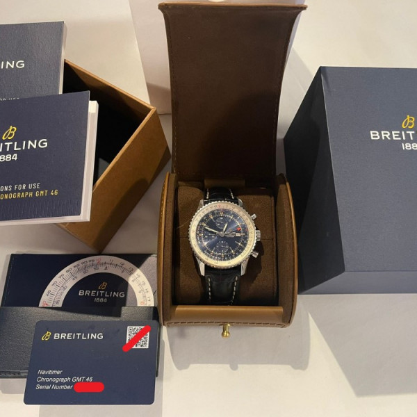 Breitling Navitimer 1 Chronograph GMT 46 A24322 Blue Dial Leather Strap Automatic Watch