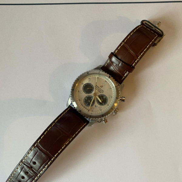 Breitling Navitimer Aviator 8 B01 AB0117 Silver Chronograph Dial Leather Strap Stainless Steel