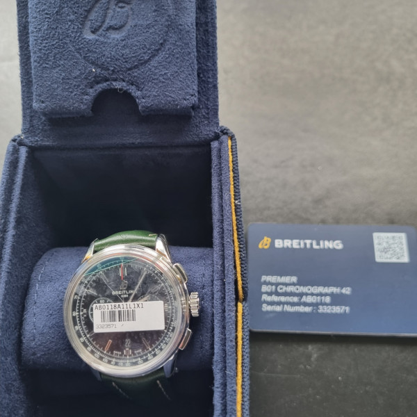 Breitling Premier B01 Chronograph 42 AB0118 Green Dial Leather Strap Stainless Steel