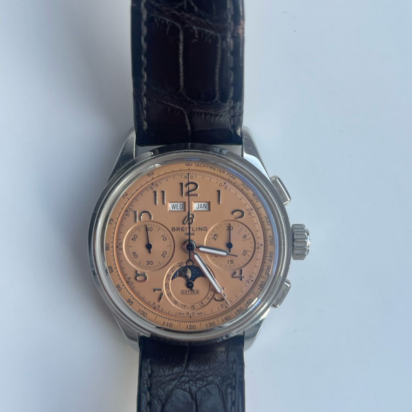 Breitling Premier B25 Datora 42 AB2510201K1P1 Pink Dial Leather Strap Stainless Steel