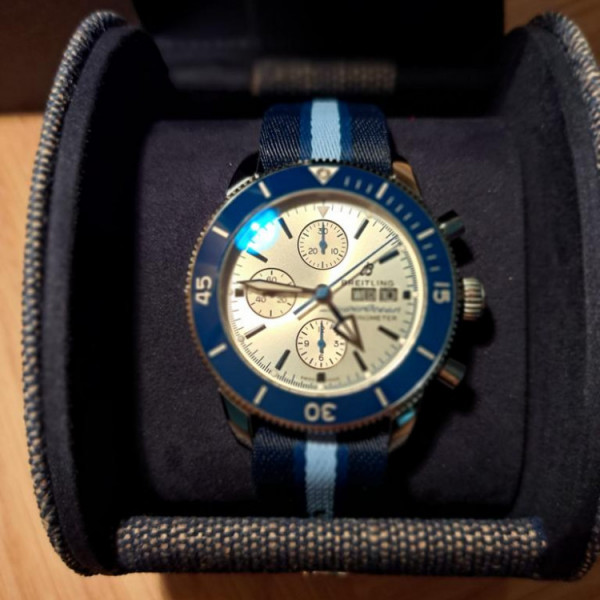 Breitling Superocean Heritage Chronograph A133131A1G1W1 Silver Dial Fabric Strap 44mm