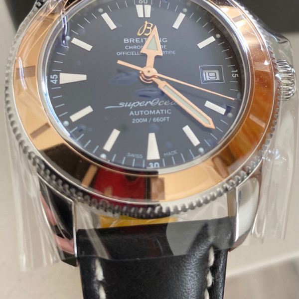 Breitling Superocean U17321 Stainless Steel Black Dial Leather Strap 42mm Automatic