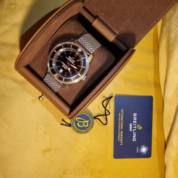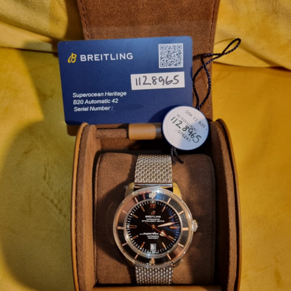Breitling Superocean Heritage II B20 Automatic 42 UB2010 with black dial, ceramic bezel and stainless steel bracelet refined dive watch.