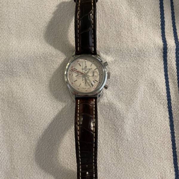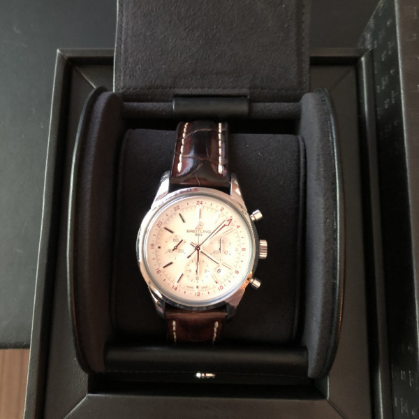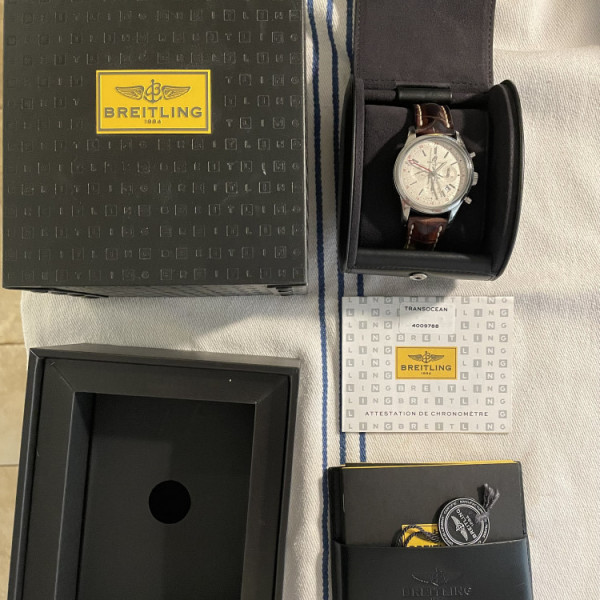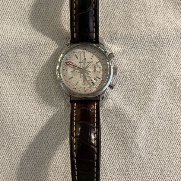 Breitling Transocean Chronograph GMT AB045112 White Dial Leather Strap 43mm