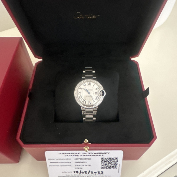 Cartier Ballon Bleu W4BB0023 Silver Dial Stainless Steel 33mm