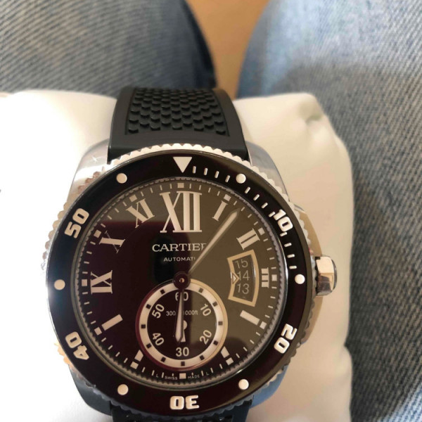 Cartier Calibre de Cartier W7100056 Black Dial Stainless Steel Rubber Strap