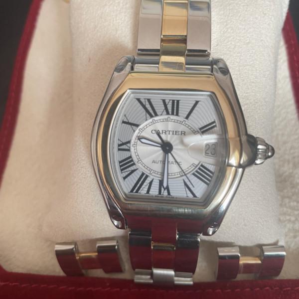 Cartier Roadster W62031Y4 Silver Dial Yellow Gold and Steel Bracelet