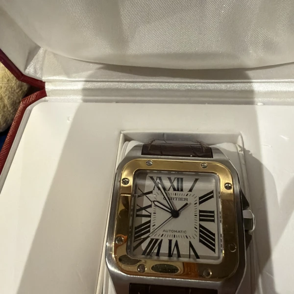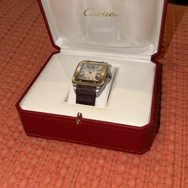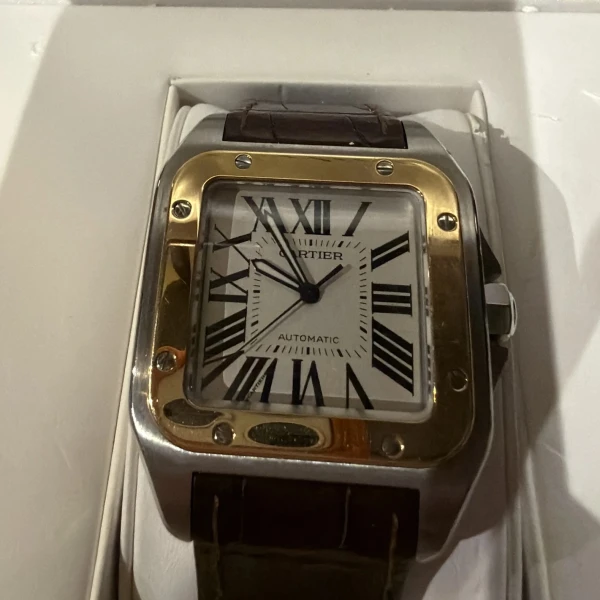 Cartier Santos 2656 Silver Dial Stainless Steel Brown Leather Strap 38mm