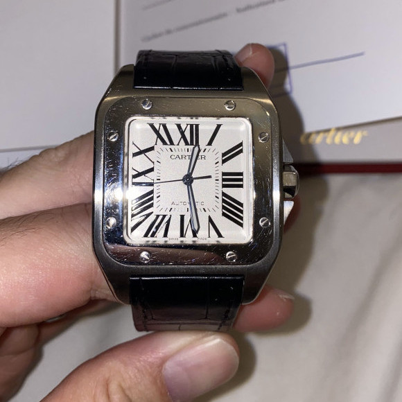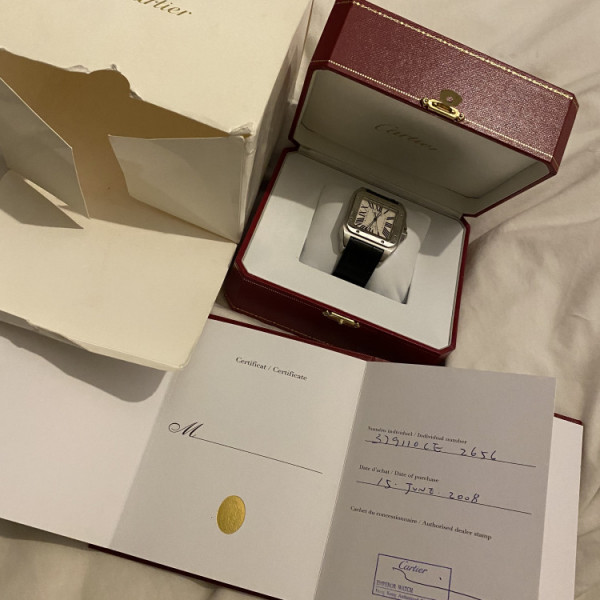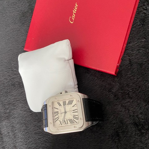 Cartier Santos 2656 White Dial Stainless Steel Leather Strap