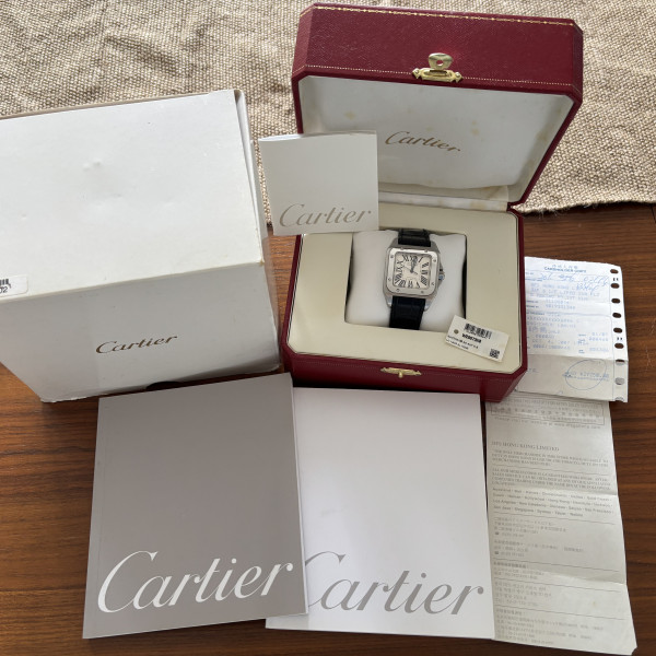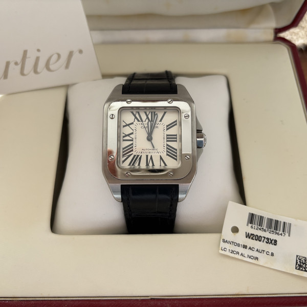 Cartier Santos 100 W20073X8 White Dial Automatic 38mm Stainless Steel Leather Strap