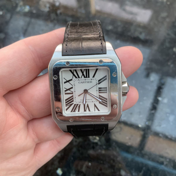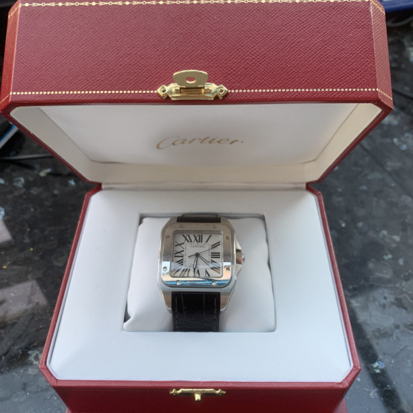 Cartier Santos 100 W20073X8 White Dial Leather Strap Automatic