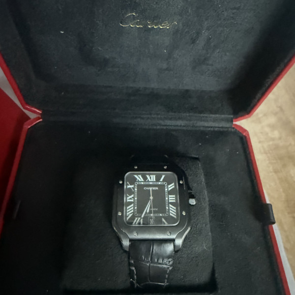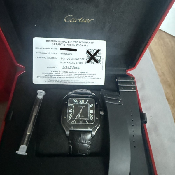 Cartier Santos De Cartier WSSA0039 Black Dial Steel 40mm Leather & Rubber Strap