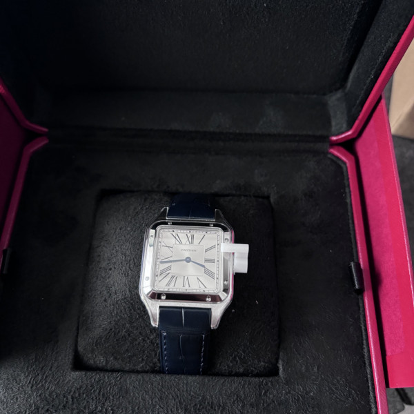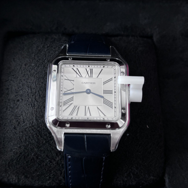Cartier Santos Dumont WSSA0022 Silver Dial Blue Leather Strap 31mm