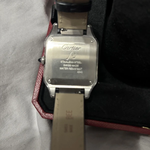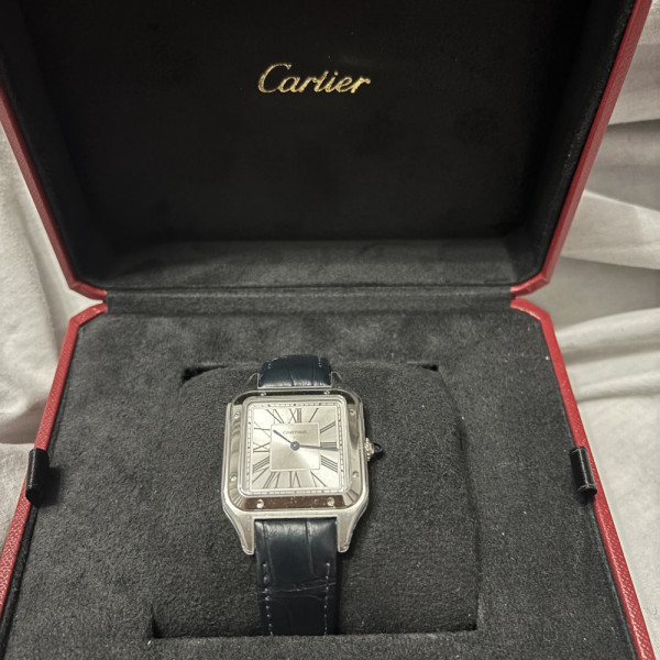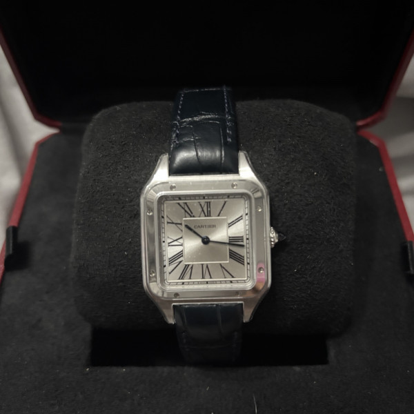 Cartier Santos-Dumont WSSA0022 Silver Dial Leather Strap Stainless Steel Quartz Dress Watch