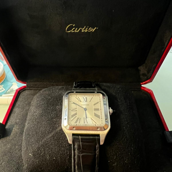 Cartier Santos-Dumont WSSA0022 Stainless Steel Silver Dial Leather Strap 43.5mm Quartz Wind