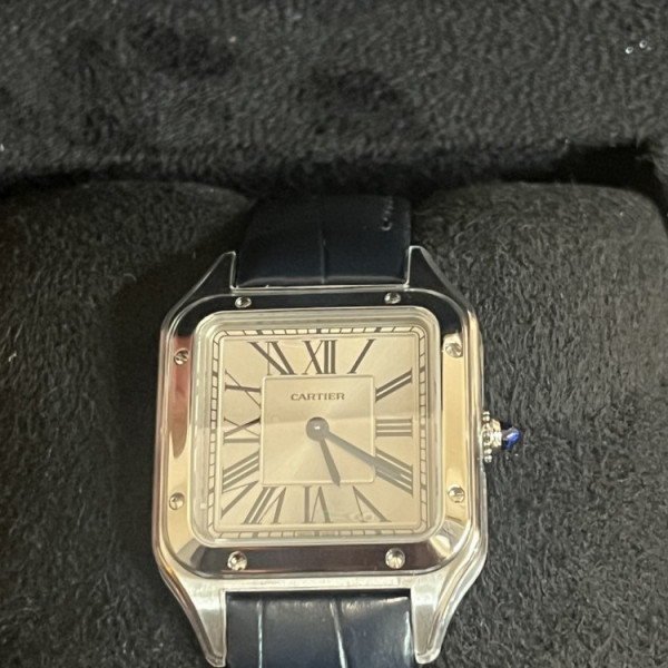 Cartier Santos-Dumont WSSA0023 Silver Dial Leather Strap Manual Wind
