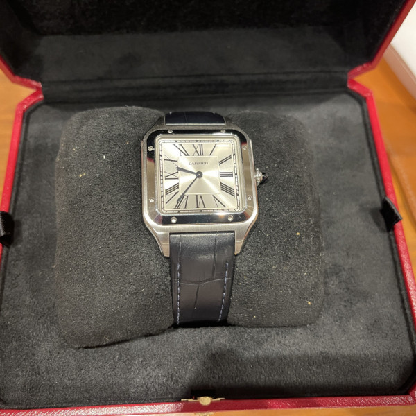 Cartier Santos-Dumont WSSA0032 Silver Dial Stainless Steel Leather Strap