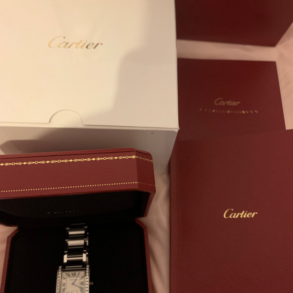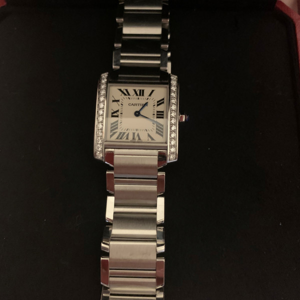 Cartier Tank Française W4TA0009 Silver Dial Diamond Bezel 30mm Stainless Steel Bracelet