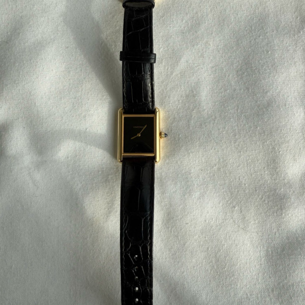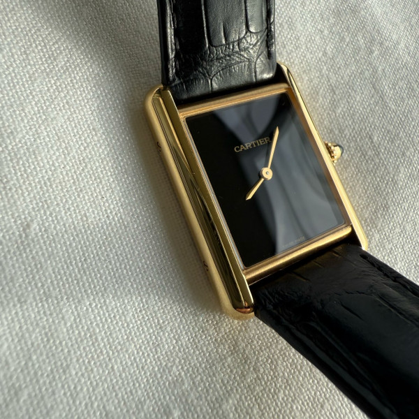 Cartier Tank Louis WGTA0091 Black Dial 25.5mm Yellow Gold Black Leather Strap