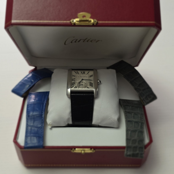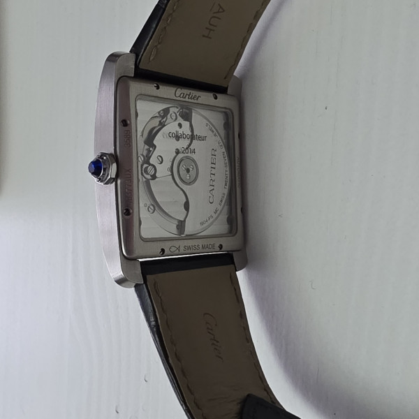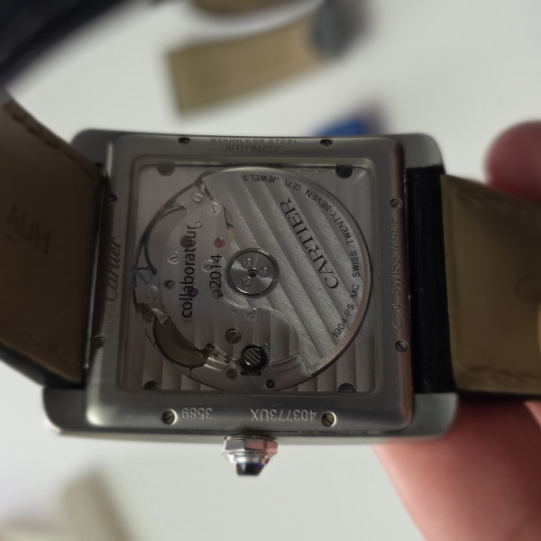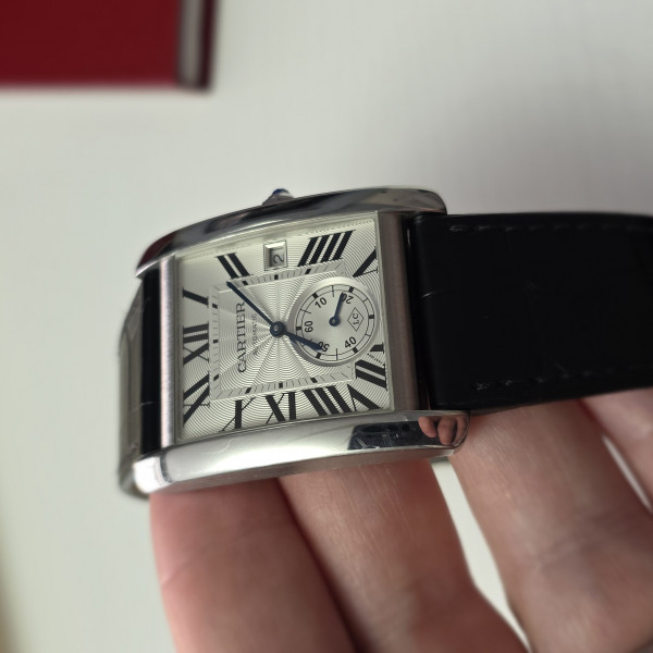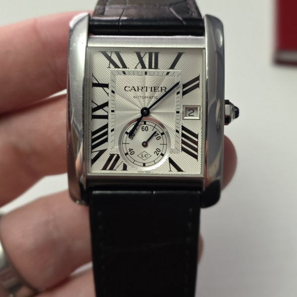 Cartier Tank MC 3589 Silver Dial Stainless Steel Leather Strap 34mm Automatic