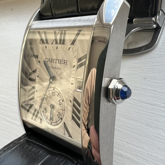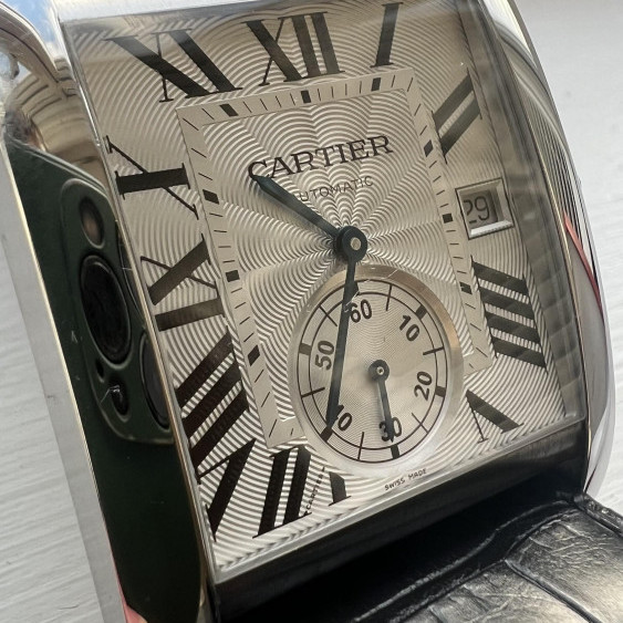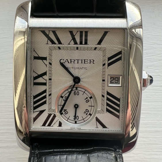 Cartier Tank MC W5330003 Silver Dial Leather Strap 44mm