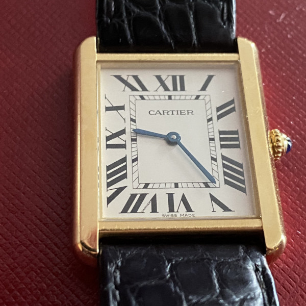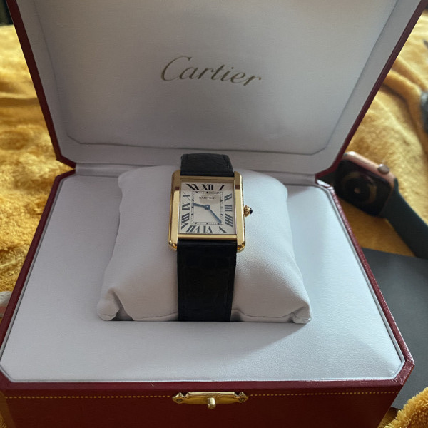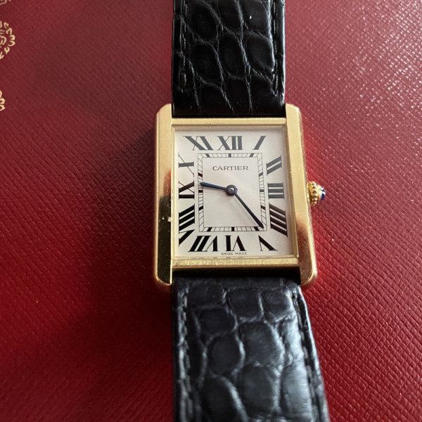 Cartier Tank Solo Yellow Gold W5200004 Silver Dial Leather Strap 27mm