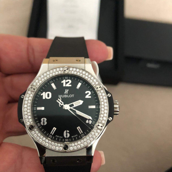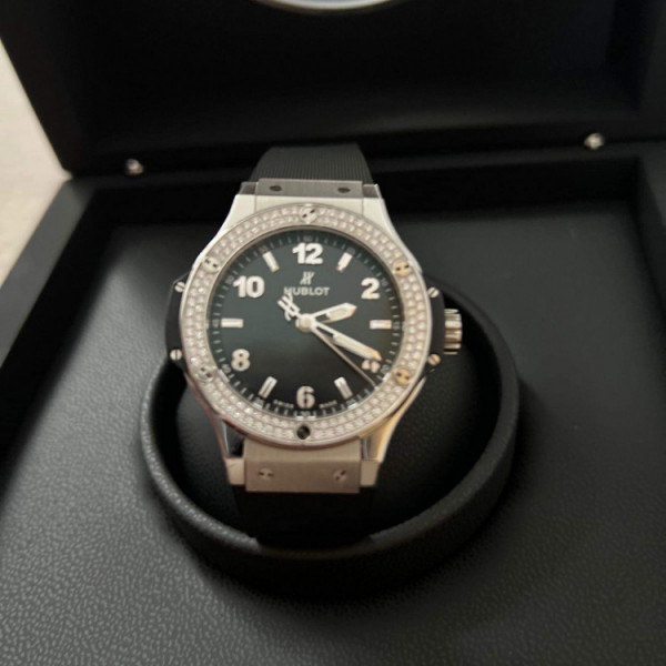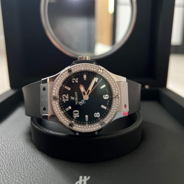 Hublot Big Bang 38 361.SX.1270.RX.1104 Black Dial Diamond Bezel Stainless Steel Case Rubber Strap