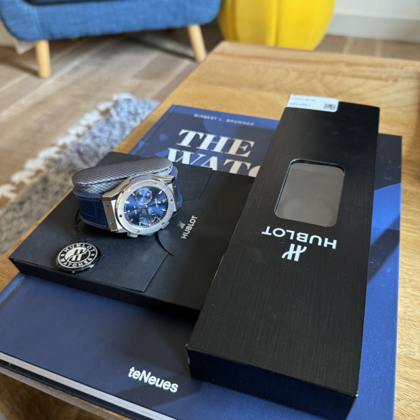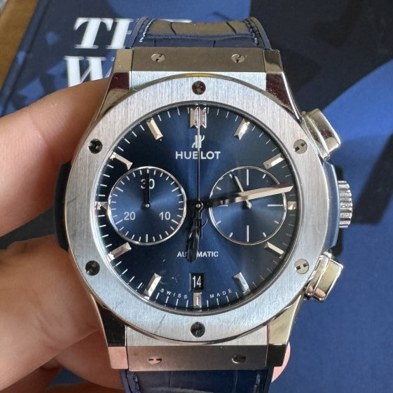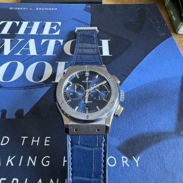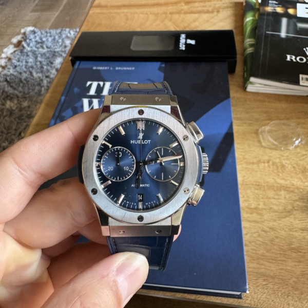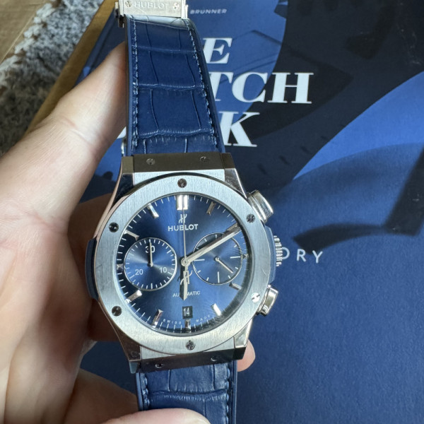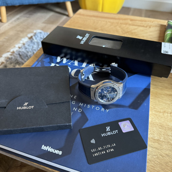 Hublot Classic Fusion Chronograph 521.NX.7170.LR Blue Dial Titanium 45mm Leather Strap