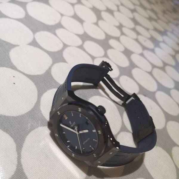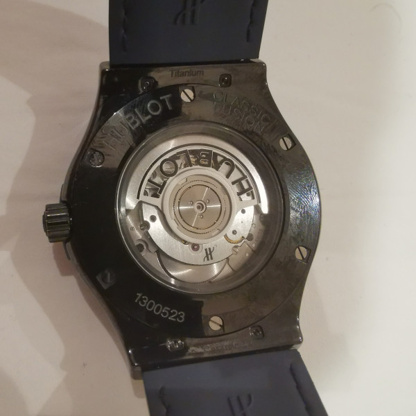 Hublot Classic Fusion 542.CM.7170.LR Blue Dial 42mm Titanium Case Leather Strap Automatic