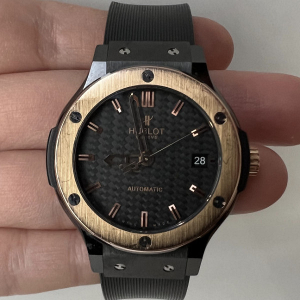 Hublot Classic Fusion 565.CO.1780.RX Black Carbon Dial King Gold Case Rubber Strap 38mm