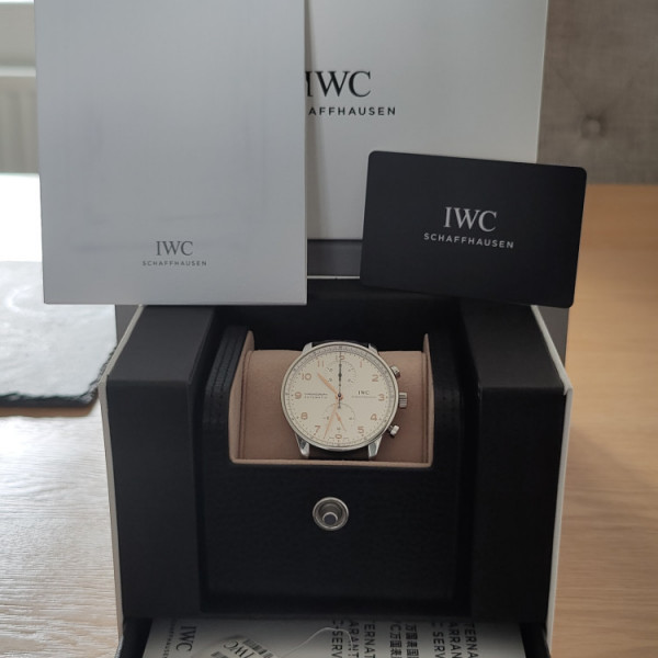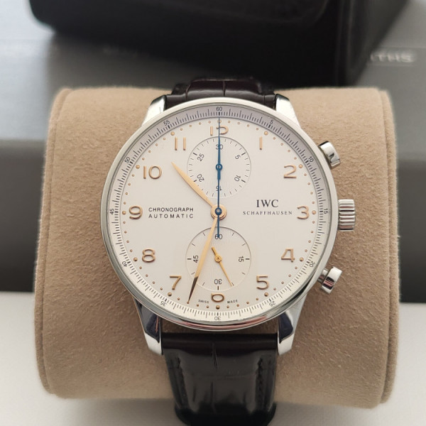 IWC Portuguese Chronograph IW371445 Silver Dial Leather Strap 41mm