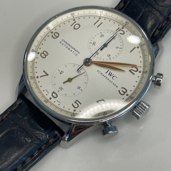 IWC Portuguese Chronograph IW371445 Silver Dial Blue Leather Strap