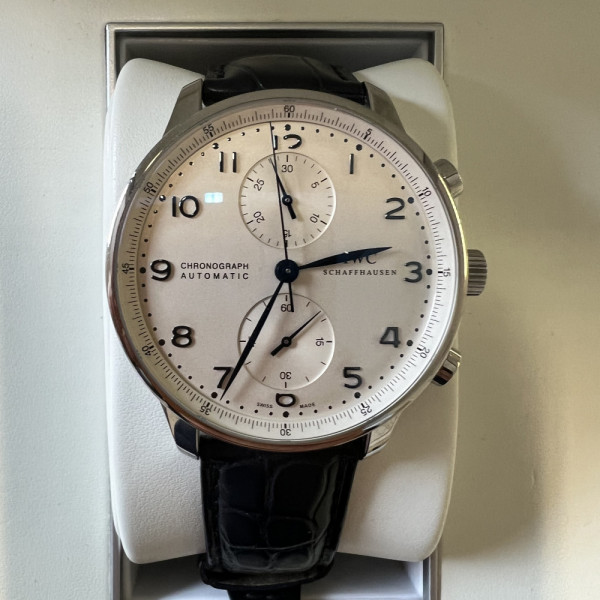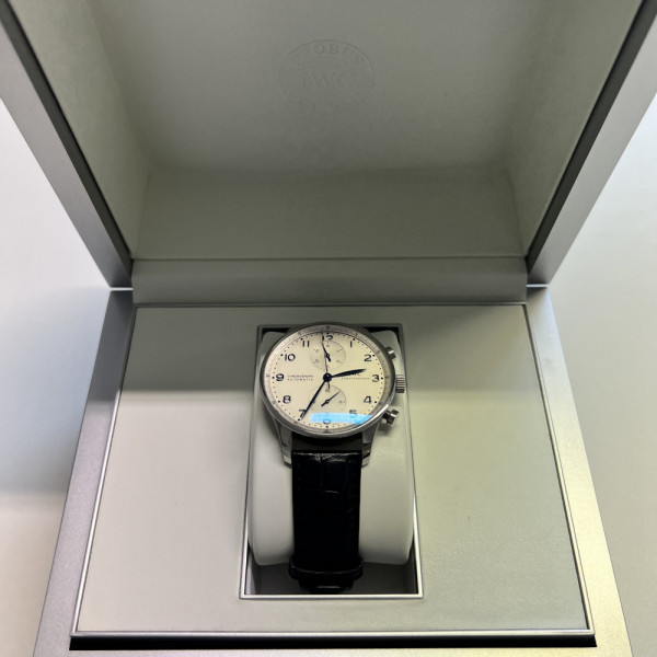 IWC Portuguese Chronograph IW371446 Silver Dial Leather Strap